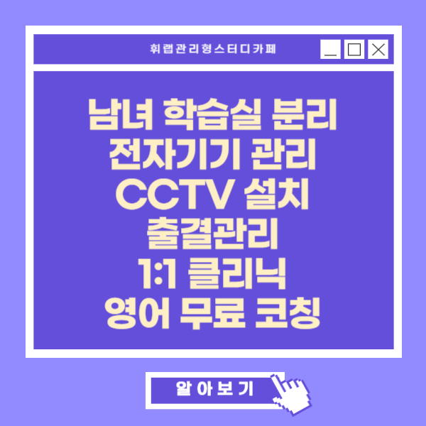 2024. 7. 6. 대치동 독재학원VS관리형스터디카페 차이점은 뭘까? <휘랩관리형스카> 안녕하세요 대치동 독재학원VS관리형스터디카페 휘랩관리형스터디카페입니다. 고3 기말고사 이후에 대치동 독재학원, 관리형 독서실여름방학 특강과 썸머스쿨 등을 알아보시는 분들도 많죠! 고3 수험생 뿐 아니라 수능을 준비하는 N수의 학생들도 대치동 독재학원, 관스카, 관독의 차이점을 알 수 있도록 휘랩관리형스카에 대해서 알아보는 시간을 가져볼게요 독재학원은? 독재학원은 독학재수학원의 줄임말이에요! 독학 + 재수학원이지만 독재학원은 N수생만 공부가 가능한 것이 아닌 고1학년부터 N수까지 다양한 수험생들이 학습을 할 수 있는 환경이에요수능 대비를 위해서 집중할 수 있도록 환경을 만들어 놓아 자습 위주의 학습 환경이 갖추어진 곳이에요 독재학원 관리형 독서실/관리형 스카와의 차이 독재학원과 관리형독서실, 관리형스터디 카페 모두자습을 할 수 있는 환경 위주로 만들어진 곳이에요 하지만 일반 독서실의 경우에는 학습 연령대가 중학생~성인까지 굉장히 다양하지만 독재 학원, 관독, 관스카의 경우에는수험생이 대부분이기 때문에 입시를 위해 준비할 수 있는 곳이라고 할 수 있어요 대치동 휘랩 관리형 스터디카페의 다른 점? 대치동 휘랩 관리형 스터디카페는독재학원, 관리형독서실처럼 자습환경이 주어지고 있고 더불어서 학생들 개개인별로 학습 진단과 코칭&피드백이 이루어지면서 개개인별의 세밀한 학습 위치와 목표를 상담하여서세밀한 학습이 진행된다는 점이 다릅니다. 대치동 휘랩 관리형 스터디카페는? 대치동 휘랩관리형 스터디카페는최적의 입시 컨설팅 보조와 동시에 타이트한 학습시간 관리로휘랩관리형스카 내에서 운영되는 학습 시간을 통해서 체계적인 학습 진행이 가능해요 그리고 개개인별 진로 상담과 학습 컨설팅, 입시컨설팅, 코칭까지 이루어지고 있고 과목별로 부족한 개념들에 대해서 코칭과 피드백을 받을 수 있기 때문에 부족한 개념들만 쏙쏙 공부할 수 있는 효율성 높은 학습이 가능해요 개인별 전자기기 관리 시스템을 통해서 학습에 방해되는 요소를 완벽하게 차단하고출결관리, CCTV 설치, 남녀 학습공간 분리과목별 부족 개념 코칭&피드백, 영어 과목 무료 학습 코칭을 통해 집중도 높은 학습과 관리형 스카의 차별화를 두고 있어요 대치동 학군, SKY 출신의 원장님께서 경험을 통한 내신대비, 수능 공부 방법의 노하우를 통해서 단기간 완벽하게 학습에 대비할 수 있도록 여름방학 특강, 썸머스쿨보다 더욱 값진 수능 대비 결과를 얻을 수 있을 거예요대치동 휘랩 관리형 스터디카페 학습 문의는 아래 링크로 문의하세요^^ 휘랩대치관리형스터디카페 서울특별시 강남구 역삼로 521 4층 휘랩대치입시컨설팅독학재수 서울특별시 강남구 선릉로72길 10-3 202호 이전 글 대치 영어 인강 과외 추천 어법 교재&여름방학 대비 공부법 다음 글 대치동 썸머스쿨 여름방학 고3 수능대비 과목별 여름방학 공부방법! <휘랩관리형스터디카페> 목록으로 돌아가기