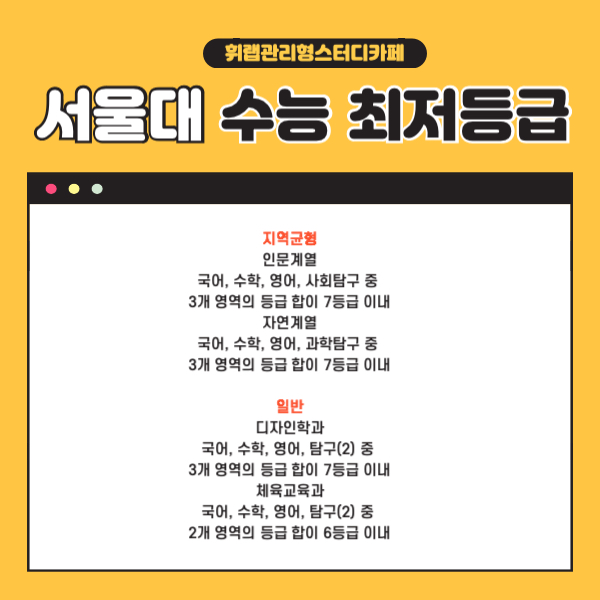 대치 SKY 스카이 대학 수능 최저 등급은? 수시 최저등급 중요성! <휘랩관리형스터디카페>