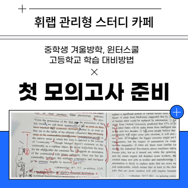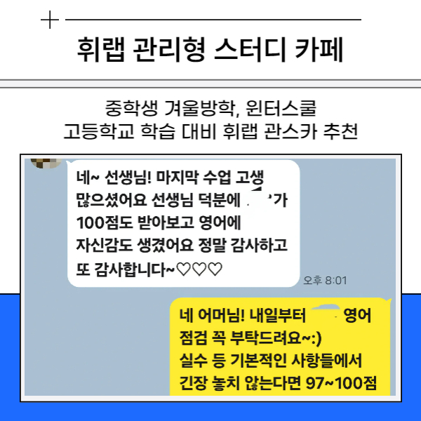 대치동 겨울방학 윈터스쿨 예비 고1 대비 중등 영어학습 휘랩관리형스터디카페에서는