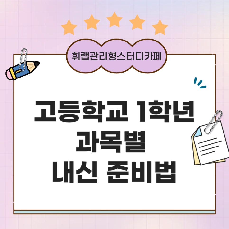 안녕하세요 대치고등학교 1학년 첫 내신 과목별 준비 방법 휘랩관리형스터디카페입니다.