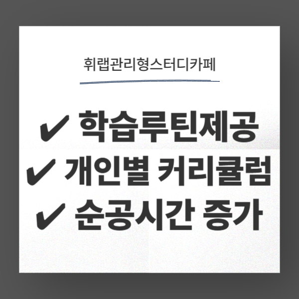 2026. 1. 27. 시대인재 부엉이라이브러리 선택 고민 시스템 바로 알기 <휘랩관리형스터디카페> 안녕하세요 시대인재 부엉이라이브러리 선택 고민 시스템 바로 알기 휘랩관리형스터디카페입니다. 관리형 독서실이나 관리형스터디카페를 고민하는 분들이라면 시대인재 부엉이라이브러리를 고민하는 분들도 많습니다. 시대인재 부엉이라이브러리는 일반 독서실과 관리형 독서실의 중간 정도의 독서실 시스템으로 학원을 다니면서 텀이 있는 시간에 이용하는 학생들이 많습니다. 오늘은 시대인재 부엉이라이브러리를 고민하는 분들을 위해서관리 시스템과 방학기간 동안 학습 효과를 극대화할 수 있는 방법에 대해서 안내해 드리겠습니다. 시대인재 부엉이라이브러리 특징 시대인재 부엉이라이브러리는 시대인재의 자습실 형태로 별도의 학생 모집을 통해서 독서실처럼 자유롭게 이용할 수 있는 공간입니다. 방학기간에는 급식을 제공하고 있다는 특징을 가지고 있고 휴대폰 제출, 출결 확인 시스템을 적용하고 있습니다. 자습 공간은 한 교실에 칸막이로 나누어진 형태이고 관리 선생님께서 휴대폰 관리, 조는 학생 등의 관리를 진행하는 자유로운 학습 공간이라고 할 수 있습니다. 성적을 올리고 싶다면왜 일반 스터디카페가 아닌 관리형이어야 할까? 일반 스터디카페의 경우에는 자리만 제공할 뿐 실제로 공부를 하는지는 확인이 어렵습니다. 그렇기 때문에 스마트폰을 몰래 보거나 졸기도 하지만 학습 관리를 전혀 할 수 없다는 것이 큰 단점입니다. 그렇기 때문에 목표 없이 시간만 때우다가 귀가하는 경우가 많고 앉아있는 시간만 길고 공부하는 시간은 거의 없다는 것이 단점입니다. 대치동 휘랩관리형스터디카페는 다릅니다. 시대인재 부엉이라이브러리 선택 고민 시스템대치동 휘랩관리형스터디카페는 철저한 학습 관리 시스템을 적용해 입실 시에 학습 목표 설정과 그에 맞는 학습 커리큘럼을 제공하고 있어 진도 체크뿐 아니라 목표에 맞는 일일학습, 주간 학습, 월간 학습을 체계적으로 관리하고 있다는 장점이 있습니다. 그리고 집중력이 흐트러질 때를 대비하여서 즉각적인 학습 코칭과 진로 상담, 멘탈 관리를 통해학습 동기부여를 더해주고 100% 집중할 수 있는 환경을 만들어 매일 꼼꼼한 학습관리를 진행하고 있습니다. 시대인재 부엉이라이브러리 선택 고민 시스템 대치동 휘랩관리형스터디카페에서는 스마트폰을 완전하게 차단할 수 있도록 대치동 관리형스터디카페 원장의 직접 관리가 진행되고 실시간 모니터링을 통해서 학생들의 집중도를 체크합니다. 그리고 완벽하게 집중할 수 있도록 남, 여 학습 공간을 분리하고 한 공간 안에 소수 인원만이 학습할 수 있도록 마련되어 있어 철저한 정숙 관리, 좌석 간의 충분한 간격으로다른 학생들의 방해 없이 완벽하게 집중하여 학습할 수 있습니다. 시대인재 부엉이라이브러리 선택 고민 시스템대치동 휘랩관리형스터디카페에서는 효율적인 방법으로 학습할 수 있도록 학습 루틴을 코칭하고 과목별 효율적인 학습이 가능하도록 과목별 시간을 알맞게 분배하여 전 과목 코칭과 피드백을 직접 받을 수 있습니다. 학원에서의 수업을 충분하게 정리할 수 있고즉시 복습을 통해서 배운 내용들을 바로 정리하고 모르는 부분들은 휘랩관스카에서 실시간 질의를 하면서완벽한 학습을 할 수 있기 때문에 학생들이 게을러질 틈 없이 단기간 등급 향상 효과를 이뤄낼 수 있습니다. 이제 새로운 학기가 시작되기 한 달 정도의 시간이 남은 만큼 이제는 본격적인 학습이 꼭 시작되어야 합니다. 계획을 세워 체계적인 전략으로 학습을 시작하는 것은시간 낭비를 줄일 수 있고 더욱 효과적인 학습이 가능합니다. 관리형독서실, 관리형스터디카페를 통해서 학원과 병행하면서 코칭까지 함께 받을 수 있는 휘랩관리형스터디카페에서 확실하게 성적 상승될 수 있도록 도와드리겠습니다. ✨ 선착순 5팀 한정 대치동 휘랩관리형스터디카페 신학기 특별 이벤트 ✨📌 페이백 이벤트✅ 기존 휘랩스카 재학생 또는 학부모님의 소개로 등록 시✅ 소개하신 분: 1명당 4만원 지급 (2명 소개 시 총 8만원!)✅ 등록하신 분: 4만원 페이백✅ 휘문고 학생·학부모: 추가 페이백 혜택💡 예시: 재학생이 친구 2명 소개 → 재학생 8만원 지급 + 각 친구 4만원 할인📌 동반 등록 이벤트✅ 친구, 동기와 함께 등록 시 각 학생 5만원 페이백🔽 휘랩관리형스터디카페 등록 문의 🔽 대치수능영어&입시컨설팅 [휘랩연구소]님의 오픈프로필 대치중고등내신수능영어&입시컨설팅 [휘랩연구소] open.kakao.com 휘랩 대치 관리형 스터디카페 서울특별시 강남구 역삼로 521 4층 휘랩대치입시컨설팅독학재수 서울특별시 강남구 선릉로72길 10-3 202호 이전 글 대치동 설 연휴 고3, N수 집중 관리반 수능 단기 완성 <휘랩관리형스터디카페> 다음 글 대치동 입시컨설팅 수시컨설팅 시기와 수시 지원전략 총정리 목록으로 돌아가기